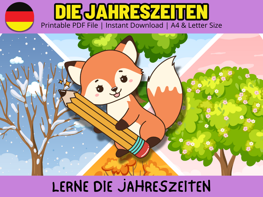 Autumnn | Coloring Activity | Early Elementary (6-8 years) | German Worksheets | Handwriting Practice Activity | Kindergarten (3-5 years) | Literacy (Alphabet, Reading & Writing) | Preschool (5-6 years) | Seasons | Spring | Summer | Upper Elementary (8-12 years) | Vocabulary Building | Winter